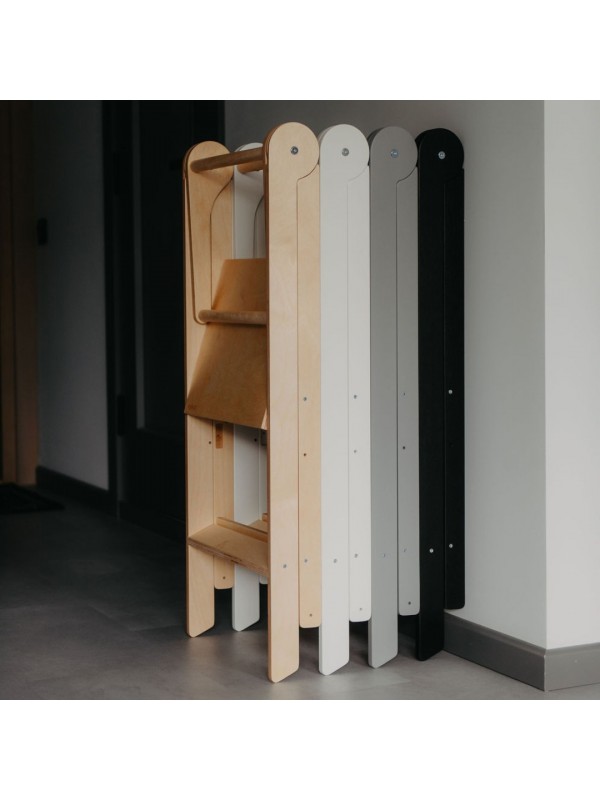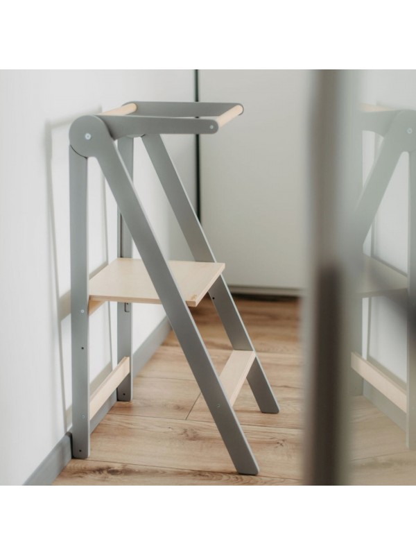 Zložljiv učni stolp je zasnovan tako, da podpira otroke in olajša vsakdanje življenje staršev. Ta praktičen pomočnik otrokom omogoča, da dosežejo kuhinjske pulte, umivalnike in druge višje površine ter se tako vključijo v vsakodnevne dejavnosti. In najboljše? Stolp se enostavno zloži na izjemno tanko obliko, kar prihrani prostor in omogoča preprosto shranjevanje.