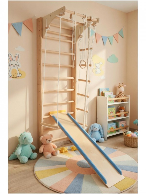 Iščete večnamensko vadbeno opremo, ki bo navdušila tako otroke kot odrasle? Naš letvenik z dodatki je idealna izbira! Izdelan v Evropi iz visokokakovostnih naravnih materialov, ki zagotavljajo varnost in trajnost, ter zasnovan tako, da zavzame minimalno prostora – popoln za vsak dom!