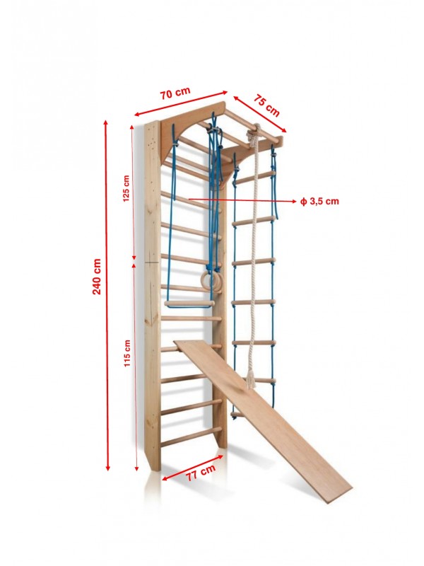 Letvenik z dodatki združuje funkcionalnost klasičnega ribstola in zabavno plezalno steno. Omogoča razvoj gibanja, moči, ravnotežja in koordinacije, hkrati pa prinaša neskončne možnosti za igro in vadbo v notranjih prostorih.