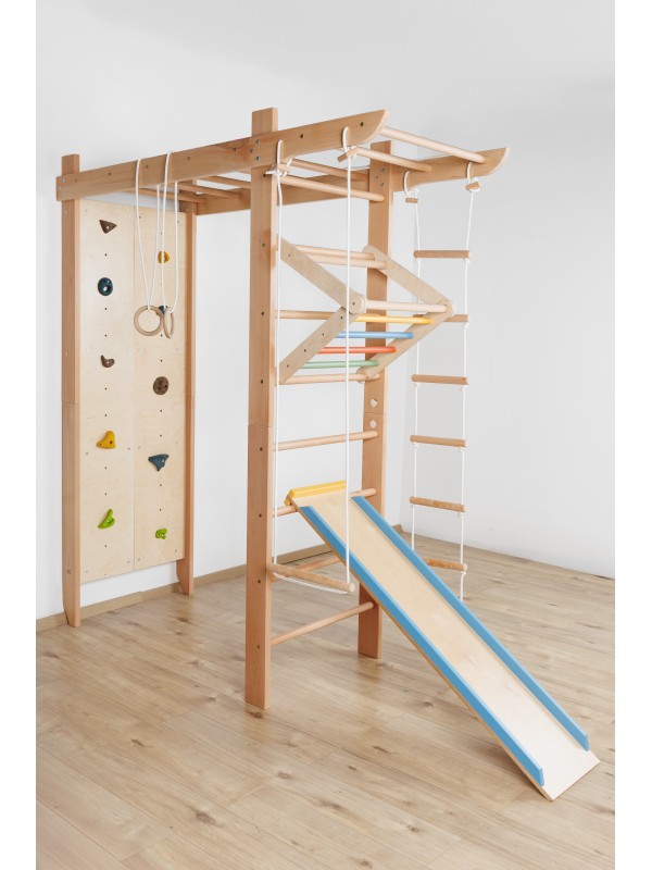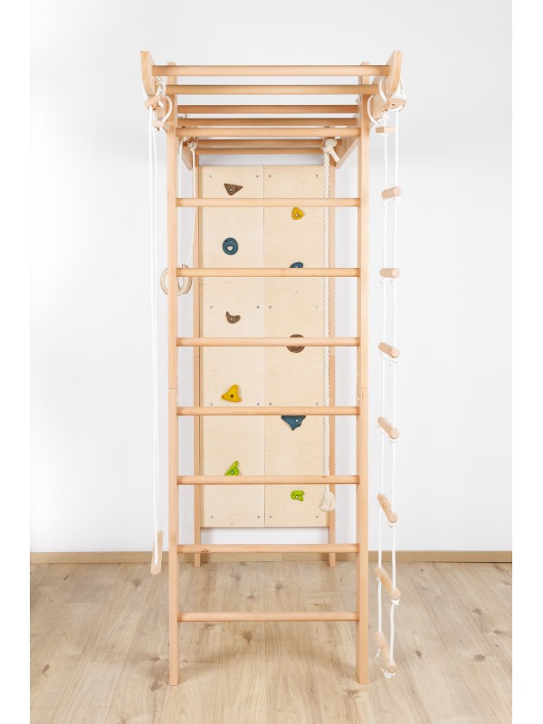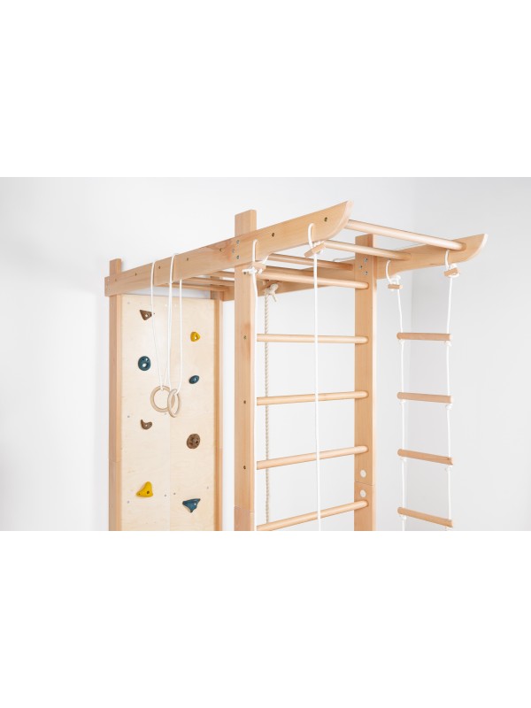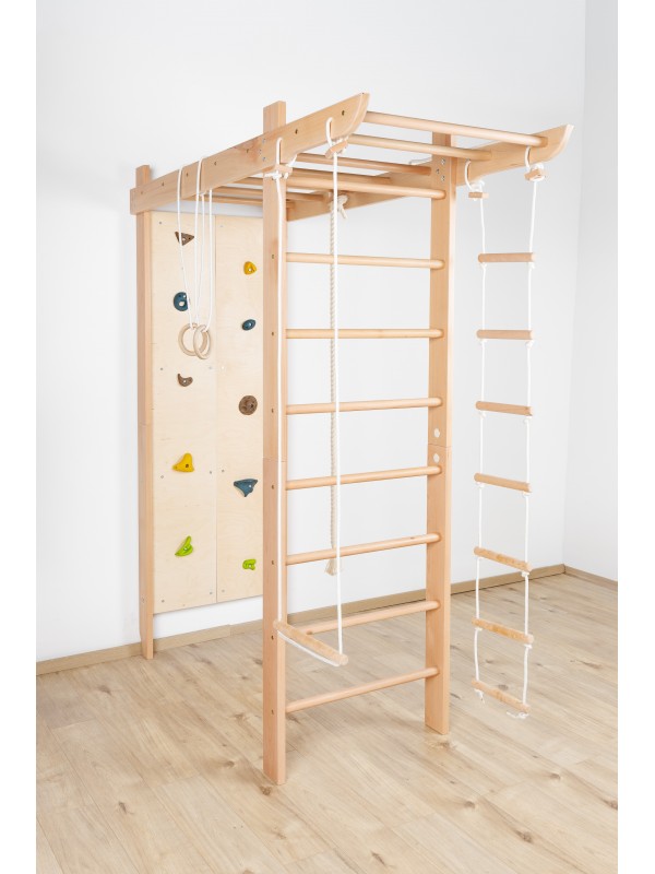 Večnamenska notranja oprema za igro, gibanje in vadbo za vse generacije. Trden bukov les zagotavlja stabilnost, varnost in prijeten naravni videz, medtem ko premišljen dizajn spodbuja gibanje ter skupno preživljanje časa.