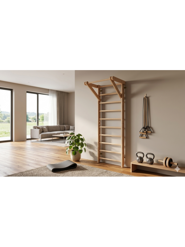 Iščete večnamensko vadbeno opremo, ki bo navdušila tako otroke kot odrasle? Naš letvenik je idealna izbira za vaš dom! Izdelan v Evropi iz visokokakovostnih naravnih materialov, ki zagotavljajo varnost in trajnost, ter zasnovan tako, da zavzame minimalno prostora – popoln za vsak dom!